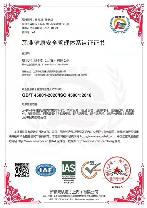 | 2022年1月22日,經(jīng)過權(quán)威認證機構(gòu)的多輪嚴格評估和審核,鏈風環(huán)境科技(上海)有限公司順利通過ISO9001質(zhì)量管理體系認證、ISO14001環(huán)境管理體系認證和ISO45001職業(yè)健康安全管理體系認證。