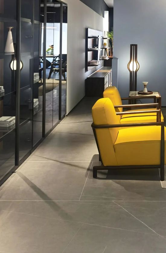 地面選用阿瑪尼灰的大巖板,不僅凸顯了整個空間的質(zhì)感,也提升了場景的縱深感。