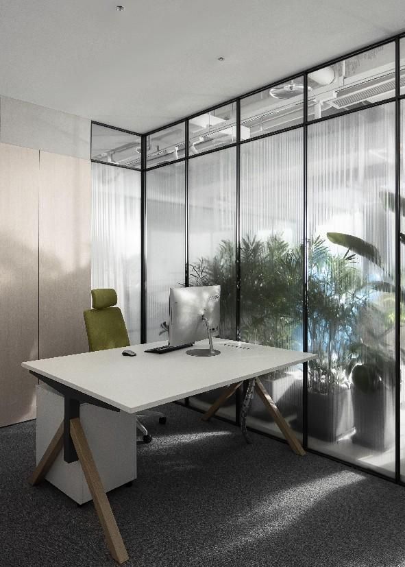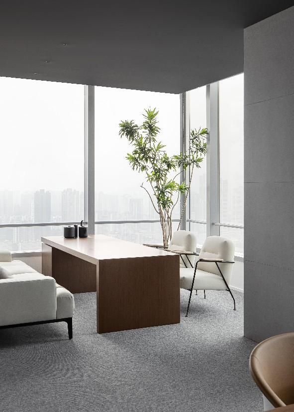 設(shè)計(jì)的構(gòu)想,是想打造一個(gè)現(xiàn)代環(huán)保,空間均質(zhì)、兼具藝術(shù)與高效的辦公場所,所以,從空間布局上,擯棄了格子間的傳統(tǒng)做法,盡量把不必要封閉的空間打開,讓窗外開闊的江景納入室內(nèi)。
