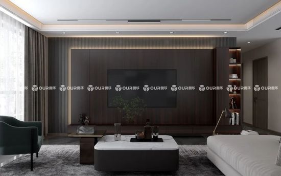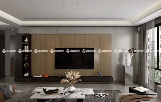 單獨(dú)將奧華黑喬木運(yùn)用在柜子上,與不同暖色系色調(diào)電視背景墻搭配更顯精致,陽(yáng)光的照耀之下還能展現(xiàn)出高級(jí)的美感。