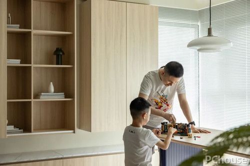 屋主 | 暢哥和驍姐 這其實(shí)是我和我老公結(jié)婚十二年以來的第一次裝修,我們是五口之家,有一個六歲的孩子,還有我的父母,三代人一起生活。隨著孩子的成長我們生活水平的提高,愈發(fā)需要一個更美好更舒適的生活環(huán)境。 所以在裝修設(shè)計之初,我就希望可以做到面面俱到,盡量照顧到老人和孩子各自的空間使用。我們期望新家是一個可以共度親子時光、共同成長的地方,既符合溫暖樸素的基調(diào),又能擁有創(chuàng)新與時尚。我們希望這個家是開放的,優(yōu)美耐看的,久待不膩的。 而最終設(shè)計師也成功地完成了我的這個心愿,我們一家人都很滿意。 這是來自四川成都五口之家的第一次裝修,這是一場打破常規(guī)的以“島”為家的新格局。 舍棄掉一板一眼的客廳,建立屬于自己的新規(guī)則。 讓光影與空間流動,讓每個角落都可駐足停留,可動可靜,可鹽可甜,有照顧老人活動的細(xì)心巧妙,也有適合孩子的開心樂園。 豆蔻島嶼,清新淡雅,以“島”唯佳,久待而不膩。 以“島”居家?活動自如 屬于三代人的豆蔻溫馨 Q1 您是出于怎樣的原因選擇設(shè)計師來幫自己設(shè)計房子的呢? 屋主:驍姐 我和我老公工作都很忙,所以需要設(shè)計師來幫助我們做裝修設(shè)計。通過在網(wǎng)絡(luò)上查看案例,感覺還是設(shè)計師比較符合我們的需求,相較于傳統(tǒng)裝修公司,設(shè)計工作室更有想法也更專業(yè),然后最終選定了榮燁老師。 Q2 您選擇了榮燁老師之后,覺得在這個裝修過程中設(shè)計師主要是提供了哪些服務(wù)呢? 屋主:驍姐 我覺得榮燁老師既是一個引領(lǐng)者,也是一個好的伙伴。一方面為我們提供了很多新的思路和想法,起到一個引導(dǎo)的作用;另一方面他也像一個好朋友,認(rèn)真耐心地傾聽我們的需求,設(shè)身處地地為我們考慮,最終讓設(shè)計成功落地。 Q3 最終裝修完的房子是否達(dá)到您的預(yù)期呢? 屋主:驍姐 是的,我們一家人都非常滿意。 Q4 那么,您當(dāng)初預(yù)想想要實(shí)現(xiàn)的是哪些方面呢? 屋主:驍姐 因?yàn)樾∨笥验_始讀小學(xué)了,我們希望家里邊是能夠多一些閱讀少一些電子產(chǎn)品的氛圍,但考慮到老人也會看電視,所以覺得客廳最好能成為一個多功能區(qū)域。最后,經(jīng)過和榮燁老師的幾輪溝通,我們定下了不以電視為中心的新客廳模式,靈活且有互動性,整個空間好似一個島嶼,非常有趣。