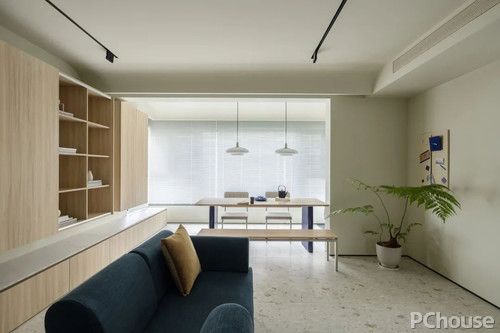 客 廳 設(shè)計師在陽臺一端設(shè)置了女主人想要的大書桌,這也是全家最常待的角落,是一家人情感紐帶,有時是親子陪伴,有時是三五好友的聚餐地,不管什么樣模式都是輕松又親昵。 為配合整體需要,設(shè)計師還采用了層架式的書柜,除了滿足書籍收納等需求,柜子挑空的設(shè)計,還可保持空間的透氣感。 而刻意壓低的吊燈高度,讓燈光和人更加親近,獨(dú)處有時能靜心,歡聚有時能悅情,于細(xì)節(jié)處見真章。 屋主:驍姐 另一個印象深刻的事,就是設(shè)計師為家里老人的生活習(xí)慣的考量,很多地方我們自己都沒想到,比如感應(yīng)地?zé)衾?,浴室的卡座啦等等,所以我覺得榮燁老師確實(shí)很細(xì)致,也很貼心。