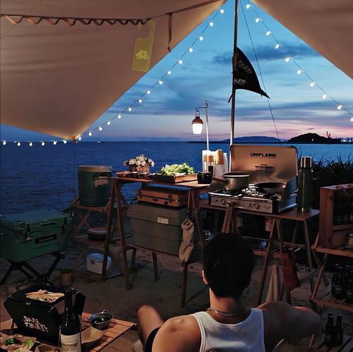 2022年, ?個全新的休閑度假熱詞——露營,上了頭條。每當(dāng)?shù)搅酥苣┖图倨?,朋友圈里曬露營的照片越來越多。當(dāng)疫情阻擋了外出的腳步,年輕人們開始玩起了花活——帳篷一頂,戶外折疊椅若干,氛圍感十足的燈光布景,漫天繁星的夜空下瑰麗的篝火與之形成鮮明的顏色對比……