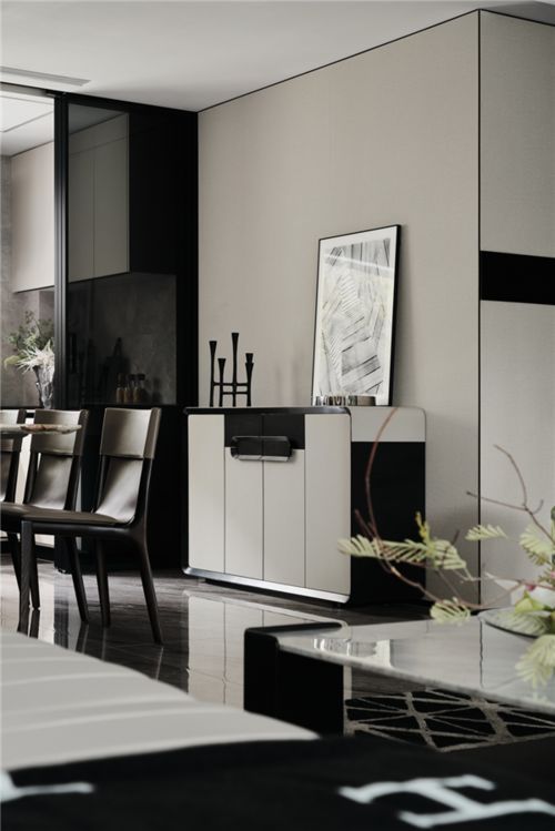 客餐通廳設(shè)計,社交實力派。洋房戶型客廳+餐廳設(shè)計,開闊大氣,盡顯主人會客尺度。打破空間壁壘,延伸了視覺的通透性。