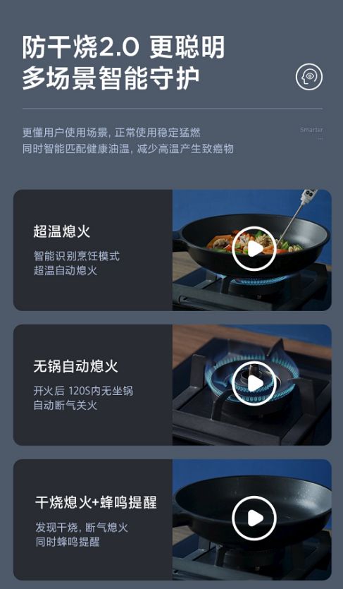 升級防干燒2.0,全方位守護爸媽烹飪安全 日常烹飪生活中,很多人難免因為有事離開廚房一會,而忘記關(guān)燃氣灶,出現(xiàn)燒干鍋、燒糊鍋的情形。比如我們的父母日漸年邁,記憶力逐漸衰退,可能僅僅是接個電話的功夫,就忘記了鍋里的飯菜,經(jīng)常性忘記關(guān)灶具,會帶來很大的火災(zāi)隱患風險。據(jù)統(tǒng)計近年來,我國共發(fā)生居住場所火宅132.4萬起,其中電氣火災(zāi)占42.7%,傷亡群體中60歲以上的占43.4%,爸媽就是處于這樣的年齡段,因此,廚房安全不容忽視。
