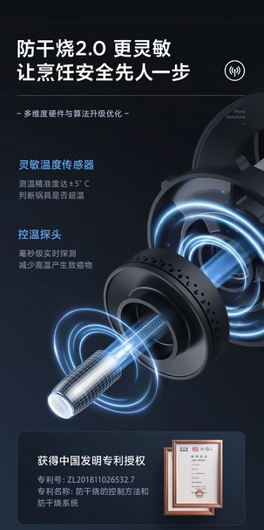 為了解決燃氣灶干燒痛點,美的全新升級二代防干燒燃氣灶Q519S-M,擁有防干燒專利,搭載靈敏溫度傳感器,能夠精準判斷鍋灶是否超溫,實現(xiàn)±5℃精控測溫,其配備智能控溫探頭,具備毫秒級實時探測,一旦超過溫度臨界值,會主動切斷氣源,有效防止干燒,減少高溫產(chǎn)生的致癌物,讓烹飪更安全。