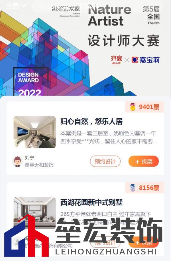 從8月25日啟動作品征集以來,共吸引了數(shù)千名設(shè)計師提交參賽作品,目前收到的作品主要為圖文和視頻兩種形式,在參賽作品當中,不少參賽設(shè)計師巧妙的將嘉寶莉藝術(shù)涂料元素融入到作品的整體風格當中,完美的將家居空間與自然藝術(shù)融合,展現(xiàn)出了設(shè)計作品的藝術(shù)張力。10月21日,第五屆全國設(shè)計師大賽將正式進入全國總決賽環(huán)節(jié),屆時各大區(qū)的參賽選手,將圍繞全國設(shè)計案例金獎、全國視頻案例金獎兩大獎項展開激烈的角逐。 此次大賽邀請了國內(nèi)高端設(shè)計大咖和行業(yè)專家擔任評委,將從多個維度對參賽作品進行評選,同時也為有需要的設(shè)計提供指導與幫助,提高行業(yè)設(shè)計師面對復雜挑戰(zhàn)的綜合能力,并為家裝行業(yè)發(fā)掘設(shè)計新星。 什么,裝修還用自己的錢?!齊家裝修分期,超低年利率3.55%起,最高可貸100萬。立即申請享受優(yōu)惠 |