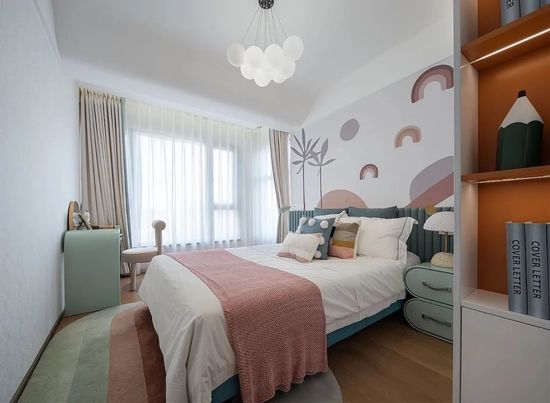 如果說客廳的奶茶色與愛馬仕橙,足以催發(fā)一場蓬勃生動(dòng)的自然聯(lián)想。那么在次臥,運(yùn)用深灰色+愛馬仕橙的撞色搭配,則更多了一抹沉穩(wěn)優(yōu)雅的氣場。兒童房則更清新活潑,溫柔淡雅的暖色調(diào),既與整體裝修風(fēng)格呼應(yīng),又不失兒童世界應(yīng)有的活力與童趣。當(dāng)然要在專業(yè)的設(shè)計(jì)師的指導(dǎo)下,才能開始裝修。畢竟高難度的撞色一不小心就會(huì)踩雷。