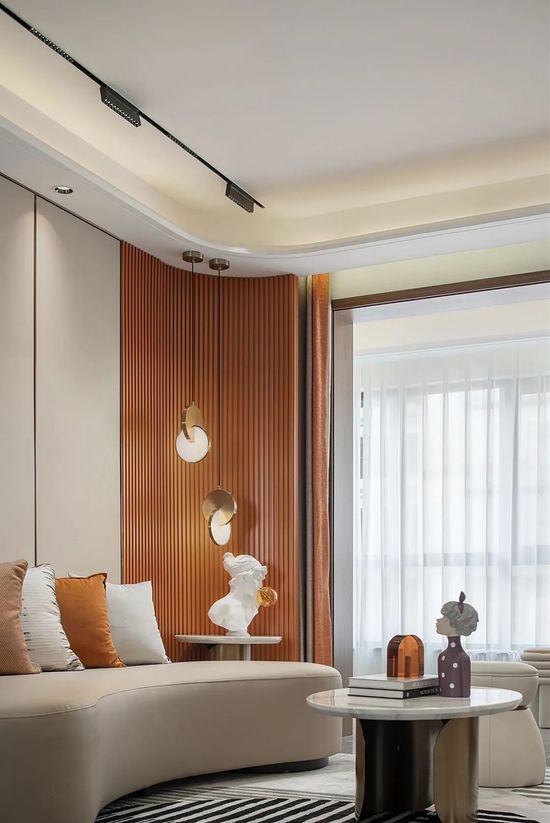 愛馬仕橙,兼具黃色的明媚和紅色的艷麗,可以瞬間在眾多色彩中脫穎而出。它高調(diào)而張揚(yáng),華麗而至美,無懼于任何色彩,將時(shí)尚的張力與敏銳極致展現(xiàn)。所以一直以來,愛馬仕橙都是設(shè)計(jì)師們的最愛,從時(shí)尚T臺跨界家居、空間配飾,這經(jīng)典的橙色調(diào)源源不斷的激發(fā)出無數(shù)令人驚艷的作品。 背景墻融入愛馬仕橙,目光所及皆溫暖 把握空間的層次感,讓空間布置更合理。愛馬仕橙與奶茶色的經(jīng)典撞色,呼應(yīng)沙發(fā)上的抱枕,使空間色彩豐富有層次。金屬銅元素,更增添輕奢氣場。