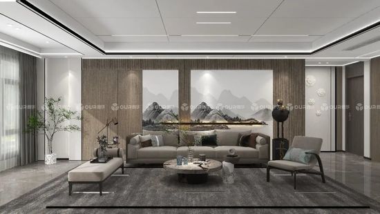 2.空間開(kāi)闊大氣 橫廳橫向拉伸景觀視角,空間尺度感更強(qiáng),營(yíng)造出開(kāi)闊大氣的視覺(jué)效果和居住體驗(yàn)。