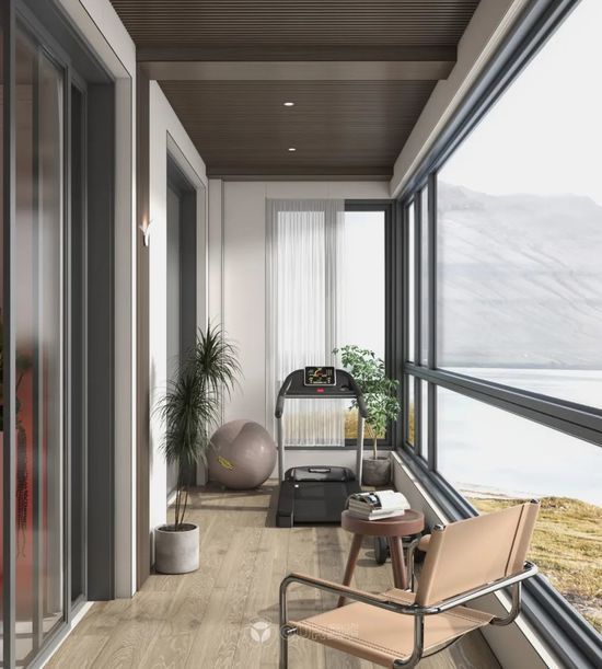如果家里的客廳不夠大,很難滿足規(guī)劃健身區(qū)的條件,不妨在陽臺(tái)上下下功夫。 陽臺(tái)作為一個(gè)特殊的空間,承接著室內(nèi)和室外,在家里起著舉足輕重的作用,甚至變成一個(gè)全新的空間——陽光健身房。