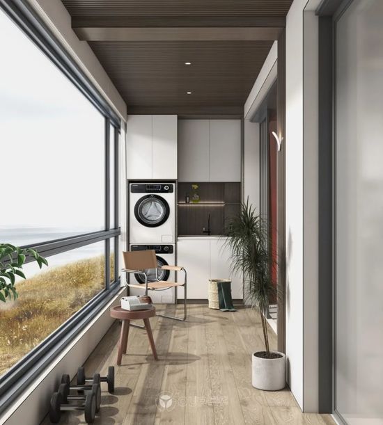 封陽臺(tái)設(shè)計(jì),可以把風(fēng)雨、熱能都阻擋在外面。嵌入式的陽臺(tái)柜,減少陽臺(tái)的雜亂感。陽光照進(jìn)空間,如同在戶外健身一樣,卻沒有燥熱與暴曬。