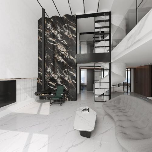 應(yīng)用產(chǎn)品:安特斯米黃、海南黃花梨-黃金棕 無吊頂設(shè)計 隨著北歐風(fēng)的盛行,人們開始喜歡less is more的生活方式,極簡主義變成主流,無吊燈設(shè)計成為潮流。無吊燈設(shè)計,無論從經(jīng)濟上,還是視覺上,都更符合當(dāng)下年輕人的想法,沒有吊頂顯得樓層更高,視覺上空間的延伸度更廣,讓家里看起來更大。