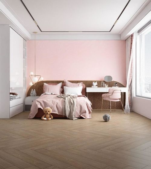 應(yīng)用產(chǎn)品:櫻花粉、海南黃花梨-淺卡其 鋪貼成人字形的瓷磚、幾何設(shè)計和樸實的中性色調(diào),搭配柔和的紡織品、清新的墻紙,打造出了俏皮但不失精致的室內(nèi)風(fēng)格。