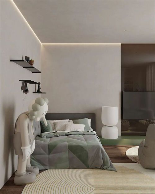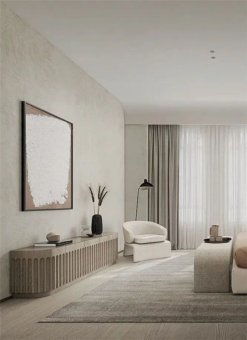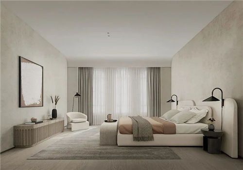 經(jīng)典在任何時代都不會過時,和克洛斯威藝術(shù)涂料的碰撞又產(chǎn)生了新的生命力。在一個藝術(shù)與美相遇的空間里,卻能夠驚喜地發(fā)現(xiàn)時光旅行的痕跡。墻面的溫潤質(zhì)感陳列于空間內(nèi),似乎是在提醒人們:活在當(dāng)下,不負(fù)韶華。 03 走進(jìn)主臥空間,你會發(fā)現(xiàn)一種沉淀心靈的色調(diào)。 主要以藝術(shù)涂料簡約內(nèi)斂的米色調(diào)為主,搭配原木系地板,配以舒適溫柔的大床,每一處細(xì)節(jié)都彰顯著屋主夫妻的獨(dú)特品味。
