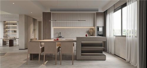 廚房采用了雙通道設(shè)計,一邊連接餐廳,一邊連接玄關(guān),提升空間的舒適和趣味性。 開放式的廚房,讓熱愛烘焙的屋主可以盡享舒適的生活節(jié)奏。