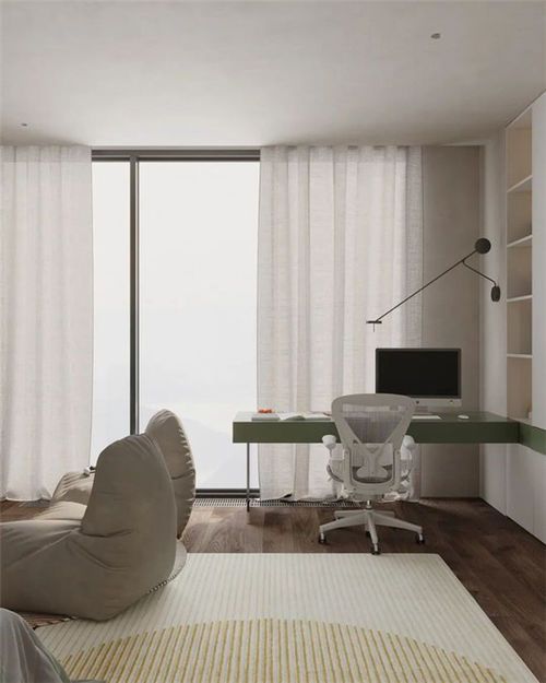 兒童房則是學(xué)習(xí)區(qū)+游戲區(qū)+睡臥區(qū),顯得井然有序,儼然一個充滿趣味+自由+活潑的小天地。