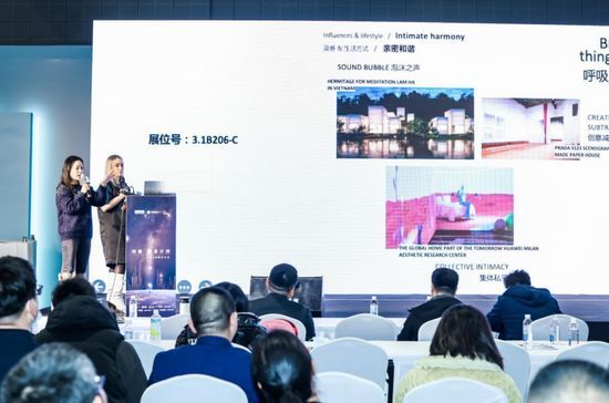 圖|華金證券首席宏觀分析師 秦泰 來(lái)自法國(guó)趨勢(shì)機(jī)構(gòu)PECLERS PARIS的趨勢(shì)與色彩設(shè)計(jì)師Elena PECCHI女士,以2024環(huán)境、材質(zhì)與設(shè)計(jì)春夏趨勢(shì)分享為題,向品牌傳達(dá)了未來(lái)的空間設(shè)計(jì)色彩潮流和搭配靈感。