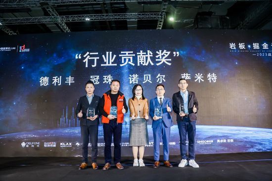 圖|左起:賈恒極、唐豪杰、趙王軻、劉勇、常成 此外,為表彰優(yōu)秀品牌過(guò)去一年的突出表現(xiàn)、勉勵(lì)新加入品牌共同進(jìn)步,“巖板·掘金計(jì)劃”現(xiàn)場(chǎng)為品牌頒發(fā)了“行業(yè)新銳”“設(shè)計(jì)潮流”“行業(yè)貢獻(xiàn)”“巖板綠色消費(fèi)推薦品牌”四大榮譽(yù)獎(jiǎng)項(xiàng)。