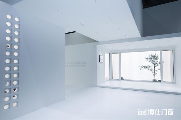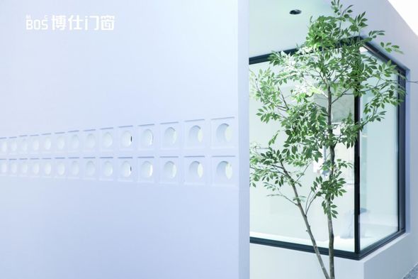 走進(jìn)展廳內(nèi)部,可以看到博仕門(mén)窗整個(gè)空間都是極簡(jiǎn)留白的設(shè)計(jì),搭配干脆利落的門(mén)窗線(xiàn)條,與建筑形成交互,讓有限的空間產(chǎn)生無(wú)限的尺度。