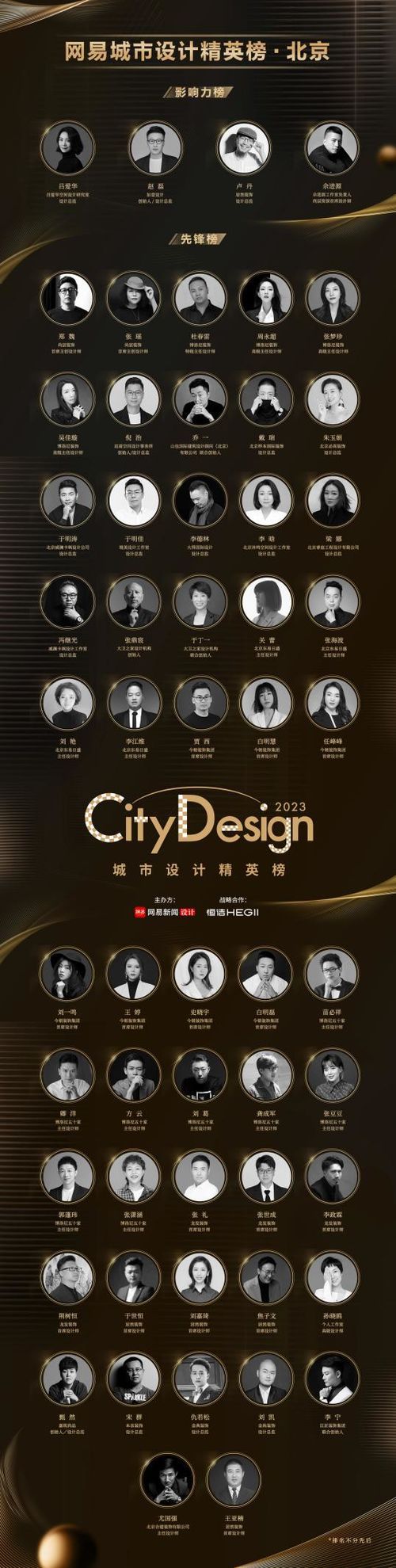 2023年,網易設計重磅推出「網易城市設計精英榜」,期望借助榜樣性力量助推設計師成長,聯結設計師頭部資源,搭建中國設計師互通洽談的理想空間。進而引入更多元化的聲音,打破設計師圈層壁壘和信息繭房,激發(fā)行業(yè)的活力與創(chuàng)造力。