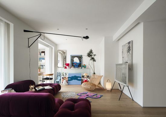 藝術(shù)在左,日常在右 當(dāng)代年輕人對(duì)潮流的追求從日常著裝逐漸侵入生活的方方面面,追求潮流似乎成為downtown青年的新興生活方式。在時(shí)尚領(lǐng)域,時(shí)裝的時(shí)效性成為衡量流行的標(biāo)準(zhǔn)。而在家居設(shè)計(jì)中,實(shí)用性和流行度需要平衡考慮、相輔相成。如何在家這個(gè)空間中營(yíng)造出新鮮感就是當(dāng)下設(shè)計(jì)師們的課題了。 在與柯沅伽的交流中,她特別談到家中的無(wú)過(guò)道設(shè)計(jì),將客廳打造成一個(gè)完整的空間,家就是她心境的完全寫(xiě)照。110平米的空間里每一處都是她精心挑選的心愛(ài)之物。客廳裝滿(mǎn)了自己喜歡的藝術(shù)品,家具和軟裝可以根據(jù)季節(jié)與心情隨意變化組合,任情緒自由流動(dòng),無(wú)拘無(wú)束。