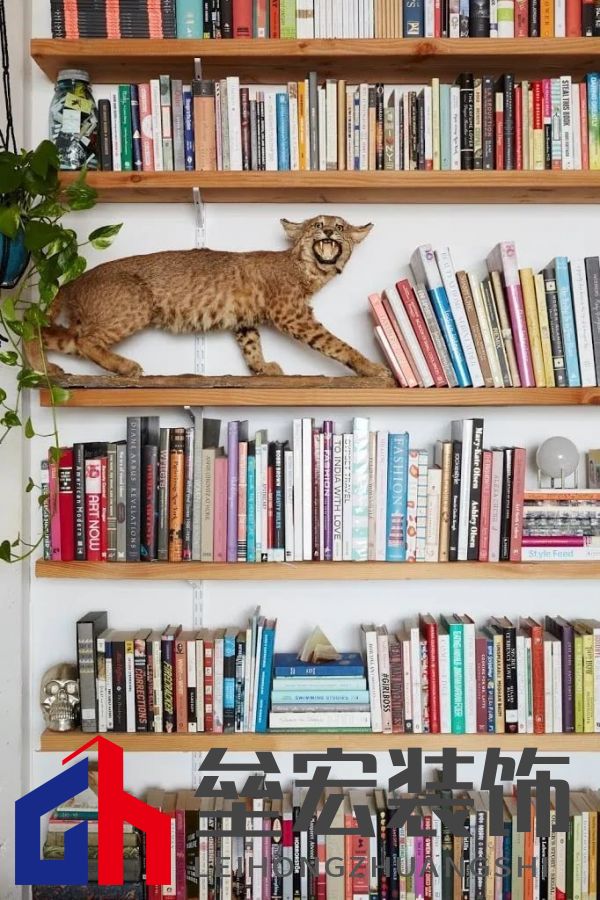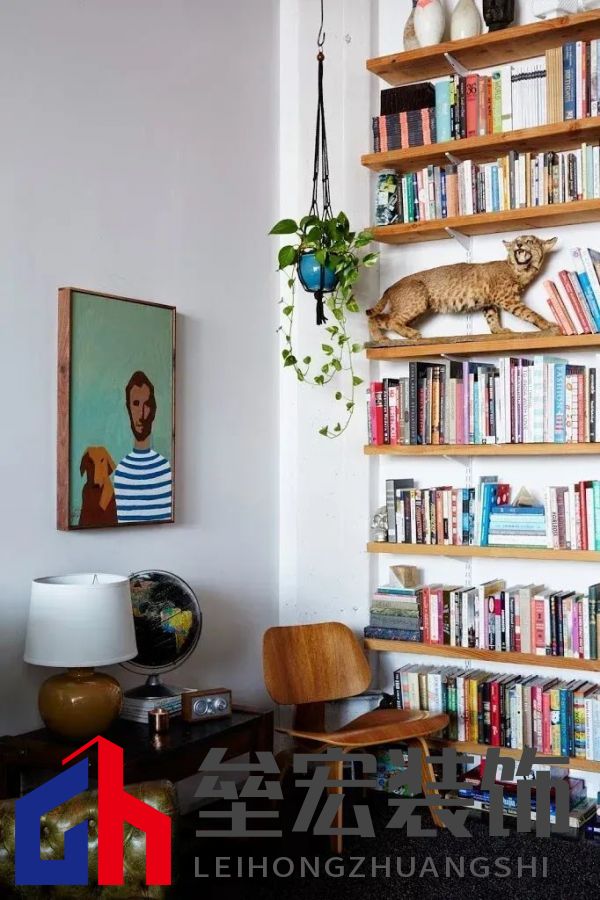? 02、 藝術(shù)型書空間Caroline是名雜志社編輯,她家是個改造后的閣樓。整個空間如她一樣有趣、酷炫。她熱衷于改造,就好像在一張空白畫布上創(chuàng)作?!皩ξ襾碚f,一個空間永遠(yuǎn)不會完工,因為它是居住者生活的真實反映?!遍喿x角是家里的愜意所在,白日里她常以多種姿勢癱在這兒,翻動喜歡的書籍。擱板架延續(xù)至整墻,與木質(zhì)單椅保持統(tǒng)一材質(zhì)、色系,整潔干凈且富有延續(xù)性。曾喜歡用色彩整理書籍的她,現(xiàn)在更愿意給予空間一種自在隨性的氛圍感,于是當(dāng)下的收納更偏主題性。旁邊一幅Hidir?Jiang?Tapanoglu的總統(tǒng)肖像,為這個松弛角落增添一抹別樣藝術(shù)氣息。