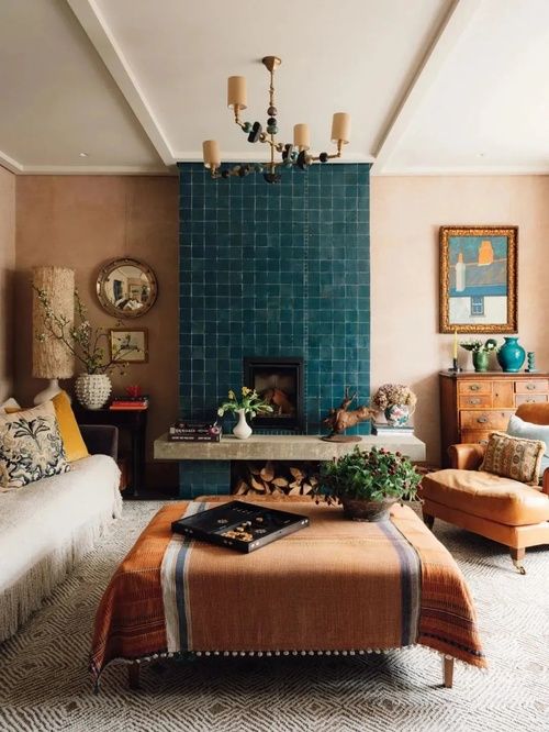 01° 局部改造 注入設(shè)計師的風(fēng)格屬性 Katie?對屋內(nèi)所有的原始特色和材料都保留了下來,但這個1930年的壁爐是個例外,她采用深藍色琉璃瓦對壁爐進行了重新包裹,不僅為房間增添了質(zhì)感,也成了房間的一大亮點,讓人只看一眼就情不自禁地被它吸引。 ? 廚房臺面和水槽是定制的一體成型的水磨石。黃銅把手的點綴,與地板的顏色遙相呼應(yīng)。木質(zhì)百葉窗柜門和吊柜讓內(nèi)里通風(fēng)透氣,更加環(huán)保健康。樓梯下狹小的凹室里放置了一張小小的工作臺,雖然面積不大,但上下分層,更有效地利用了空間。 ?