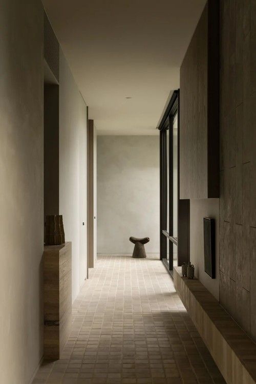 土色的瓷磚地面為通往臥室的走廊帶來了明亮且質(zhì)樸的氛圍,右側(cè)的玻璃窗戶則巧妙地引入自然光線,讓整個走廊隨著日光的變化而煥發(fā)不同魅力。 02° 功能與情感統(tǒng)一 現(xiàn)代簡約設(shè)計的典范 在Simone?Haag的設(shè)計中,充分展現(xiàn)了家具不僅是居住空間的組成部分,更是人們心靈的寄托和情感的載體。