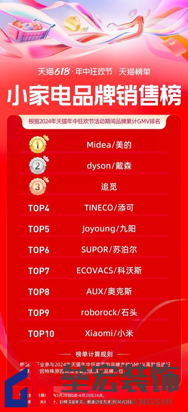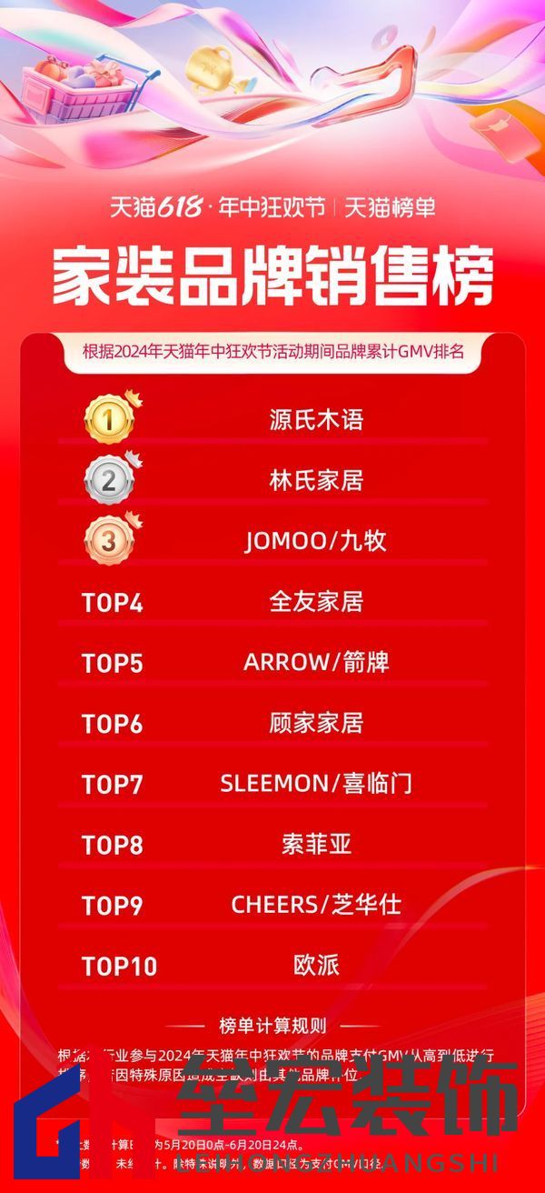 | 日前,天貓618全周期(5.20-6.20)品牌成交排行榜發(fā)布,家享生活、3C數(shù)碼、玩具潮玩、健康等行業(yè)的領(lǐng)跑品牌、商家出爐。 今年天貓618取消預(yù)售,現(xiàn)貨開(kāi)賣(mài),截至6月18日24點(diǎn),365個(gè)品牌在天貓618成交破億,超36000個(gè)品牌成交翻倍,品牌在天貓618實(shí)現(xiàn)上半年最大的生意爆發(fā)。 家電家裝家居迎來(lái)品牌爆發(fā)式增長(zhǎng),開(kāi)賣(mài)首日就有119個(gè)單品成交過(guò)千萬(wàn),截止6月20日,1868個(gè)品牌同比去年成交翻倍。 家電家裝品牌表現(xiàn)方面,源氏木語(yǔ)、林氏家居、九牧包攬家裝品牌榜前三;水星家紡、羅萊家紡、亞朵星球為家居品牌GMV排名前三選手;大家電品牌方面,海爾、美的、格力三大巨頭依次位列排名前三;美的、戴森、追覓登上小家電品牌銷售榜前三名。 據(jù)悉,今年天貓618,淘寶天貓堅(jiān)持“用戶為先”,致力“品牌增長(zhǎng)”,升級(jí)88VIP權(quán)益、打通淘寶天貓滿減;并作出史上最大力度投入,加投150億的紅包、品類券。品牌的翻倍增長(zhǎng)是“用戶為先”的自然結(jié)果。 以下為泛家居行業(yè),天貓618全周期(5.20-6.20)品牌成交排行榜: