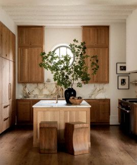 設(shè)計(jì)師用業(yè)主豐富的藝術(shù)藏品裝點(diǎn)墻面,精選跨時(shí)代的攝影佳作,為空間增添了深厚的藝術(shù)氛圍。開放式廚房移除兩室間的隔墻,營造更為寬敞明亮的效果。淺色調(diào)的木質(zhì)櫥柜與地板和諧相融,大理石防濺板與圓形窗戶則為整體設(shè)計(jì)增添戲劇化的亮點(diǎn)。 ?
