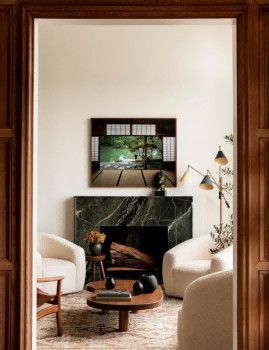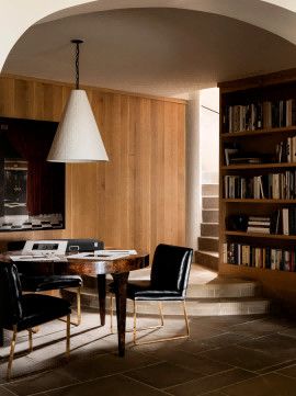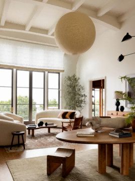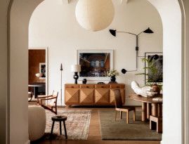 Betsy?Brown對(duì)于原有空間里對(duì)于年輕人不夠友好的設(shè)計(jì)進(jìn)行了重新規(guī)劃,不僅優(yōu)化了空間配置,更在美學(xué)層面展現(xiàn)了非凡的創(chuàng)造力。設(shè)計(jì)師將現(xiàn)代生活的舒適性與經(jīng)典美學(xué)線條融合,構(gòu)筑出一個(gè)洋溢著藝術(shù)氛圍、獨(dú)具魅力的居所,充分彰顯藝術(shù)之家獨(dú)特而不凡的品味。 ? 米白、棕褐及灰黑等溫和而深邃的自然色彩籠罩空間,家具與裝飾品的挑選秉持著極簡主義的流暢線條感。 在材質(zhì)運(yùn)用上,Betsy?Brown巧妙融入木材、石材、亞麻織物與皮革等自然元素,不同的質(zhì)感,以及在歲月洗禮下別具一格的風(fēng)貌顯現(xiàn)。這個(gè)占地4500平方英尺的家,共15個(gè)房間,涵蓋書房、藝術(shù)創(chuàng)作室、攝影工作室、三間臥室,以及底層的酒窖、酒吧和健身區(qū)域等。Brown巧妙地將客廳劃分為兩個(gè)獨(dú)立空間,并在接近前門的位置增設(shè)了一張橢圓形的大型餐桌,既實(shí)用又添雅致。站在陽臺(tái)上,可以飽覽伯明翰連綿的山巒和城市標(biāo)志性建筑的壯麗景色。這些自然與人文景觀為設(shè)計(jì)師提供了無盡的靈感,她巧妙地將室外蔥郁的綠意引入室內(nèi),實(shí)現(xiàn)了一種將外界美景融入居家空間的藝術(shù)效果。