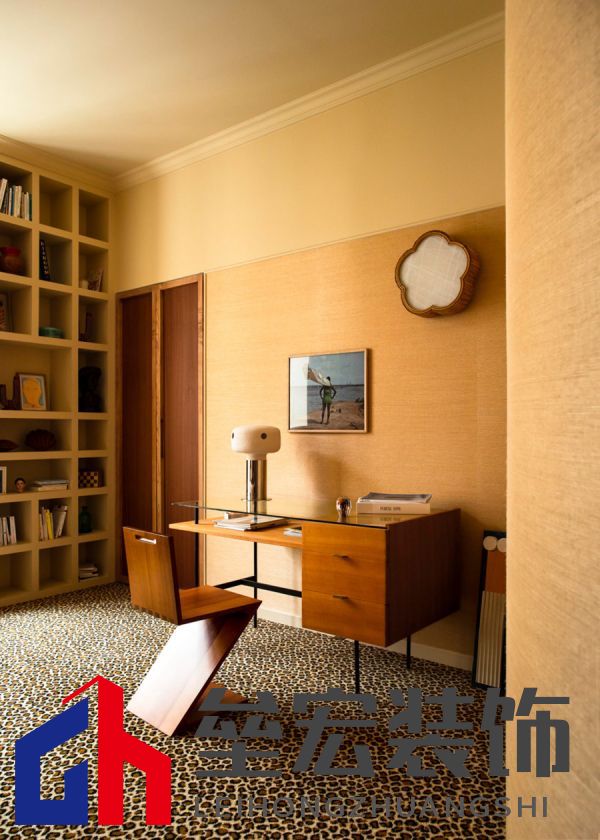 書房設(shè)計(jì)簡潔而高效,采用線性布局,一張極簡風(fēng)格的書桌搭配人體工學(xué)椅子,滿足日常工作和學(xué)習(xí)需求。墻面安裝了大面積的定制書架,用來擺放書籍和藝術(shù)品。