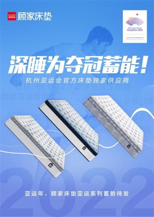 ??顧家家居計劃在亞運(yùn)村、競賽場館、新聞中心、亞組委辦公區(qū)、亞運(yùn)會簽約酒店等地點(diǎn)及杭外場地等各類使用地點(diǎn)為亞運(yùn)大家庭里的運(yùn)動員、媒體、亞組委工作人員、志愿者、技術(shù)官員以及各國領(lǐng)導(dǎo)及亞奧理事會官員等六大群體提供深睡產(chǎn)品及服務(wù)。 ??顧家家居創(chuàng)立于1982年,堅持創(chuàng)新驅(qū)動發(fā)展,深耕家居行業(yè),成為了中國家居制造業(yè)領(lǐng)軍者。顧家床墊作為顧家家居旗下床墊品牌,一直專注于睡眠科學(xué)的研究和運(yùn)用,以“深睡”為核心理念,構(gòu)建科學(xué)的深睡研發(fā)體系、產(chǎn)品體系和服務(wù)體系。在深睡領(lǐng)域沉淀了多項(xiàng)專利技術(shù),通過打造具有吸濕排汗透氣特性的顧家亞運(yùn)系列床墊,幫助運(yùn)動員更好的進(jìn)入深睡狀態(tài),備戰(zhàn)亞運(yùn),深睡為奪冠蓄能。
