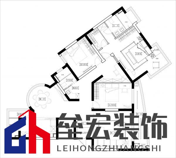 ??然而,家家有本難念的經(jīng),裝修也是如此。在改造前,張女士家的房型是比較少見的不規(guī)則戶型,因此改造的難點在于戶型的結(jié)構(gòu)調(diào)整和廚房功能區(qū)的劃分。首先,該戶型有三個陽臺,但是由于限制,全部使用的利用價值不高。其次,廚房對于整個戶型的面積和居住人口偏小,但是餐廳區(qū)域有非常漂亮的圓弧形落地玻璃窗。再次,走道過于狹長,主臥室床背景墻面偏短,與如此大面積的戶型相比缺乏大氣。  改造前戶型圖