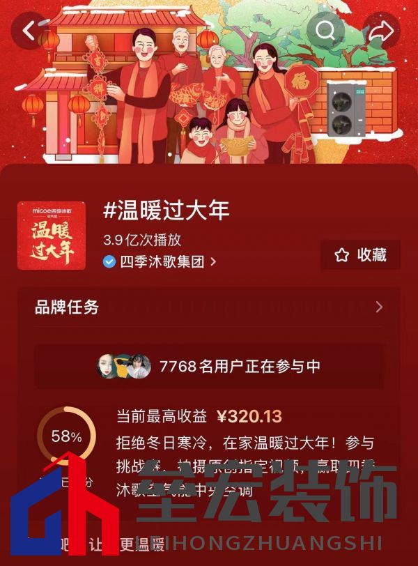 ??四季沐歌空氣能—面面俱到舒適體驗(yàn) ??暖身亦暖心,將“暖”字貫穿至活動(dòng)的每一處細(xì)節(jié)。可以說,#溫暖過大年#抖音挑戰(zhàn)賽以喜聞樂見且簡(jiǎn)單易行的方式,全心助力消費(fèi)者打造令人向往的、溫暖的生活場(chǎng)景,體現(xiàn)了四季沐歌對(duì)消費(fèi)者需求的深度洞察,引導(dǎo)消費(fèi)者建立更符合現(xiàn)代人生活節(jié)奏與精神追求的生活方式。截至到2月3日,即大年初三,#溫暖過大年#抖音區(qū)域挑戰(zhàn)賽已播放超過3.9億次,成為這個(gè)新年里的又一個(gè)全新“年俗”。
