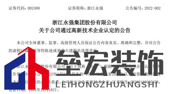 1月26日,浙江永強(qiáng)發(fā)布《關(guān)于公司通過(guò)高新技術(shù)企業(yè)認(rèn)定的公告》,稱浙江永強(qiáng)集團(tuán)股份有限公司(以下簡(jiǎn)稱“公司”)根據(jù)全國(guó)高新技術(shù)企業(yè)認(rèn)定管理 工作領(lǐng)導(dǎo)小組辦公室2022年1月24日發(fā)布的《關(guān)于對(duì)浙江省2021年認(rèn)定的第一批高新技 術(shù)企業(yè)進(jìn)行備案的公告》獲悉,公司被認(rèn)定為高新技術(shù)企業(yè)。 1、證書編號(hào)::GR202133005678 2、發(fā)證日期:2021年12月16日 3、有效期:3年 對(duì)公司的影響: 根據(jù)國(guó)家相關(guān)規(guī)定,公司自本次通過(guò)高新技術(shù)企業(yè)認(rèn)定后連續(xù)三年(2021年至2023年)可享受國(guó)家關(guān)于高新技術(shù)企業(yè)的稅收優(yōu)惠政策,即按15%的稅率繳納企業(yè)所得稅。公司獲得高新技術(shù)企業(yè)認(rèn)定后,原企業(yè)所得稅稅率從25%調(diào)整為15%,對(duì)公司未來(lái)年度經(jīng)營(yíng)狀況將產(chǎn)生積極影響。 四、江山歐派:全資子公司江山花木匠家居有限公司 1月25日,江山歐派發(fā)布《關(guān)于全資子公司通過(guò)高新技術(shù)企業(yè)認(rèn)定的公告》。