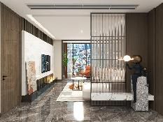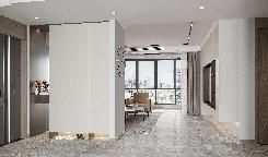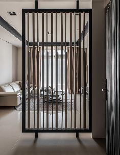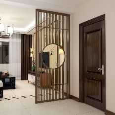 2.進(jìn)門見餐廳 如果進(jìn)門是餐廳的話,可以將玄關(guān)柜和餐邊柜設(shè)計為一體式組合柜,L型設(shè)計既化解了轉(zhuǎn)角墻體的尷尬,也充分利用了空間,解決了進(jìn)門空間的收納難題,組合式柜體風(fēng)格統(tǒng)一,還增強(qiáng)了美觀性。定時餐邊柜時,柜體中部最好挖空,可以用來當(dāng)水吧,放置水杯、水壺等雜物。 二、隔斷 進(jìn)門見廳總是有“一覽無余”的尷尬,主人的隱私也得不到保障,即使戶型沒有自帶玄關(guān),很多人也會利用各種方式進(jìn)行隔斷。 1.普通隔斷 普通隔斷性價比高,安裝也很方便,基本上不會受戶型影響,是很多家庭的第一選擇。普通隔斷一般分為木質(zhì)隔斷、鐵藝隔斷和玻璃隔斷,可以根據(jù)不同的家裝風(fēng)格選擇不同材質(zhì)的隔斷,美觀大氣,也不會影響室內(nèi)采光。