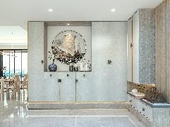 成品柜隔斷(全友126311玄關(guān)柜) 3.組合式隔斷 有的家庭有也會將普通隔斷和柜體隔斷組合式設(shè)計,不僅增加入戶空間功能,讓進(jìn)門見廳的空間層次更豐富,也更顯個性。