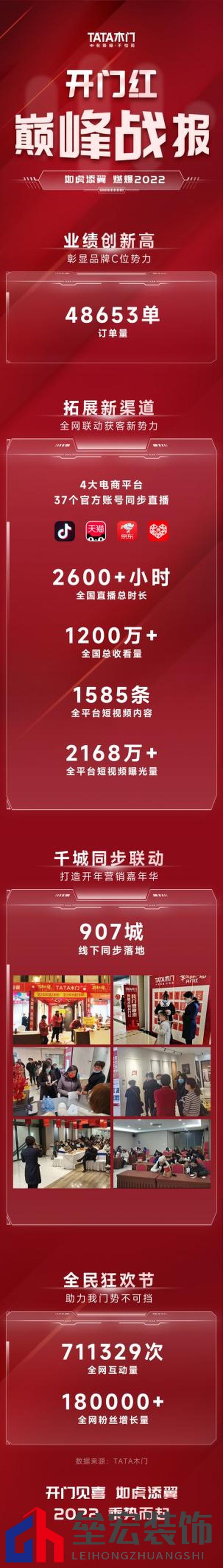 ??用48653單成交轉(zhuǎn)化 給出行業(yè)“開門紅”營銷范本 ??直播總時長超2600+小時、全平臺視頻內(nèi)容1585條、其短視頻曝光量突破2168萬+,總收看量超1200萬人,全網(wǎng)互動量711329次、全網(wǎng)粉絲量猛增18萬+,并最終實現(xiàn)了48653單的成交轉(zhuǎn)化......這一連串的數(shù)據(jù)就是TATA木門在春節(jié)期間啟動的開門紅營銷的戰(zhàn)報數(shù)據(jù)。全國范圍內(nèi)37個官方賬號在抖音、天貓、京東和拼多多四大平臺同步直播聯(lián)動,TATA木門用一場直播再一次證明了品牌的高度與品牌號召力。 ??誰能想到,在2021年房地產(chǎn)市場充滿了不確定性的一年中,存量房市場也出現(xiàn)了增速放緩的趨勢,加之原材料價格上漲、消費需求減弱等主客觀因素影響下,無論是大家居行業(yè)或是聚焦于木門行業(yè),都承受著巨大的壓力。然而凡是總有例外,正是在這樣的大環(huán)境下,TATA木門卻用一場漂亮的開門紅進一步擴大行業(yè)優(yōu)勢,實現(xiàn)逆勢增長,為行業(yè)同仁提供了一個可供參考的“教科書”級營銷范本。 ??在流量為王的時代下,TATA木門的開門紅數(shù)據(jù)足以令人眼紅,然而能夠取得令業(yè)界為之側(cè)目的成績,TATA木門又有著怎樣的過人之處呢?