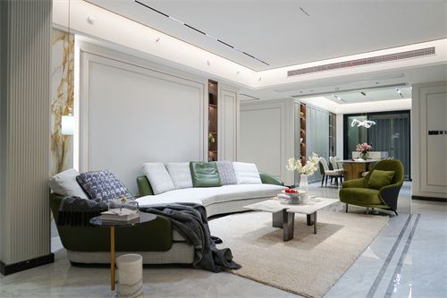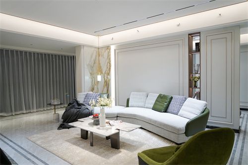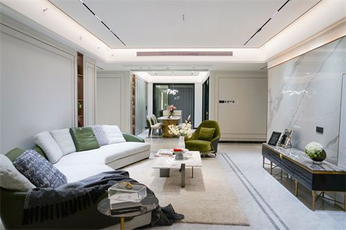 ??為了實(shí)現(xiàn)陳總的理想居所,名雕設(shè)計(jì)師探討的不僅僅是品牌材質(zhì)、空間格局、軟裝搭配,還有業(yè)主的家居訴求以及生活方式。人居與空間相契合,用心將每一個(gè)細(xì)節(jié)發(fā)揮到極致。 ??NO.02 實(shí)景呈現(xiàn),如期而至 ??每一個(gè)生活方式的落地,背后充滿對(duì)業(yè)主的生活洞察,離不開(kāi)全案團(tuán)隊(duì)的協(xié)調(diào)合作與嚴(yán)苛的工藝交付驗(yàn)收步驟。設(shè)計(jì)溝通專業(yè)舒暢、施工對(duì)接規(guī)范透明、團(tuán)隊(duì)服務(wù)省心滿意、居住體驗(yàn)個(gè)性環(huán)保......是陳總對(duì)我們的高度肯定。 ??本案設(shè)計(jì)在現(xiàn)代風(fēng)格設(shè)計(jì)理念基礎(chǔ)上融合法式線條,利用布局、材質(zhì)、色彩、光影等設(shè)計(jì)語(yǔ)言與生活熱情揉合起來(lái),滿足居者的生活期盼。
