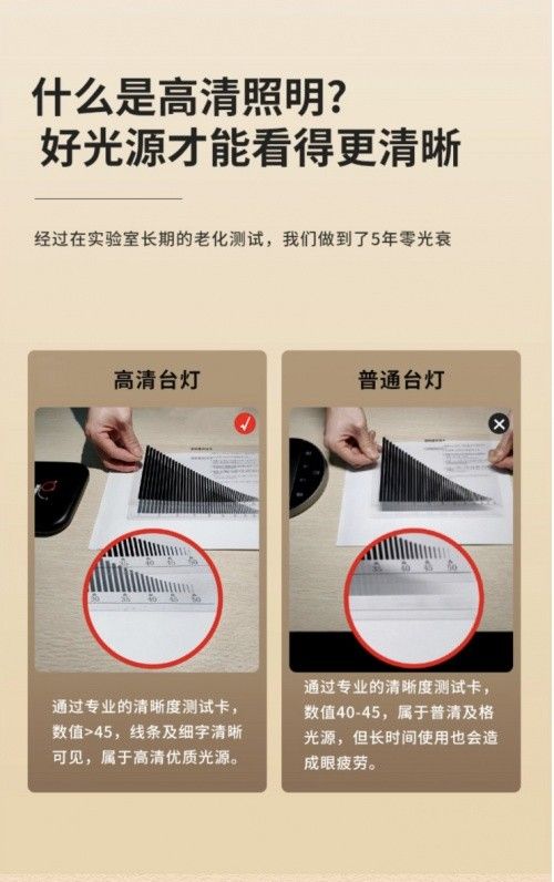 ??除此之外,一款好臺燈最基本要具備的各項(xiàng)數(shù)據(jù)指標(biāo),別人的最高要求也是飛行班的最低標(biāo)準(zhǔn)。亮度為549.6lm(遠(yuǎn)超國AA級標(biāo)準(zhǔn)250-500lm),清晰度>45,博物館級顯色指數(shù)>94,0藍(lán)光(RG=0)和防眩光都是最基本的必要前提條件。在市場嚴(yán)格的審視下,必須做到比市場更為嚴(yán)苛!孩子在家學(xué)習(xí)眼睛有保障,為父母解除焦慮。