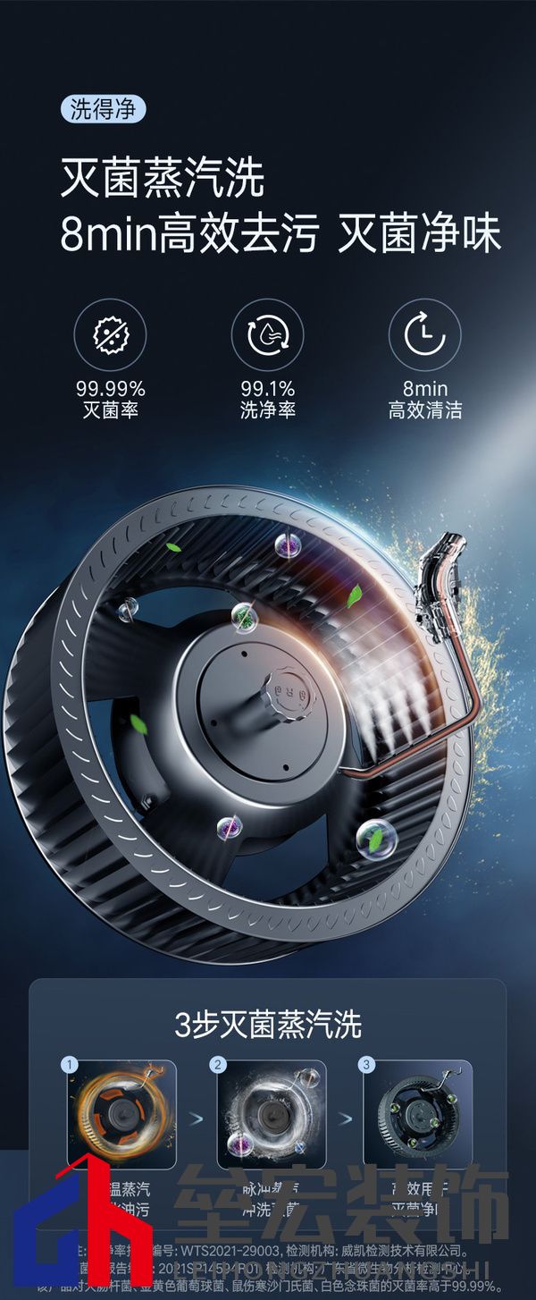 這一臺美的頂側(cè)雙吸集成灶LS5通過用戶手勢智控,體感操作,帶來了這種隨心掌控的科技感。舉手之間,風(fēng)量隨心,用智控凈煙,告別煙霧繚繞;揮手智控,化繁為簡,用輕松手勢,告別繁瑣按鍵。借助于揮手體驗(yàn),用戶可有效防止指間水漬和油污浸染面板,還原面板潔凈無痕。 因此揮一揮,揮走的不僅是油煙,更是復(fù)雜枯燥的烹飪生活。而帶來的,則是美的集成灶懂生活更懂你的智慧體驗(yàn)。 第四招:八分鐘滅菌凈味的清潔體驗(yàn) 占據(jù)廚房C位的集成灶,在用凈煙保證全家健康的同時(shí),又該如何保持自身內(nèi)部清潔,避免出現(xiàn)將干凈獻(xiàn)給廚房,而將油污留給自己的情形?答案是定期清洗。 為此,常見的清洗方案有請專業(yè)師傅上門清潔和自主清潔。前者每次清洗成本估算約300元。如果按每年清洗兩次來算,8年清洗費(fèi)用就要4800元,太費(fèi)錢。后者雖然省錢,但是自主拆洗,很容易因?yàn)椴皇煜?nèi)部結(jié)構(gòu),導(dǎo)致拆得下,裝不上,還會弄臟廚房,零件滿地,實(shí)則費(fèi)時(shí)費(fèi)力。