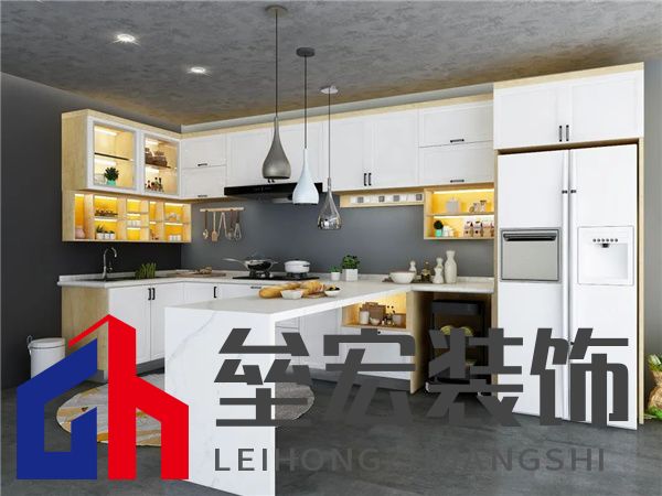 ??2、半島型島臺(tái) ??半島型島臺(tái)一般是通過倚靠一面墻或櫥柜而成,也可以與餐桌相連,這種島臺(tái)可以最大化利用空間,在領(lǐng)尚摩爾系列櫥柜中,島臺(tái)倚靠側(cè)邊墻面延伸,U型的整體設(shè)計(jì)符合較小型的廚房空間布局,島臺(tái)下方設(shè)置柜體,還可增加廚房收納空間。