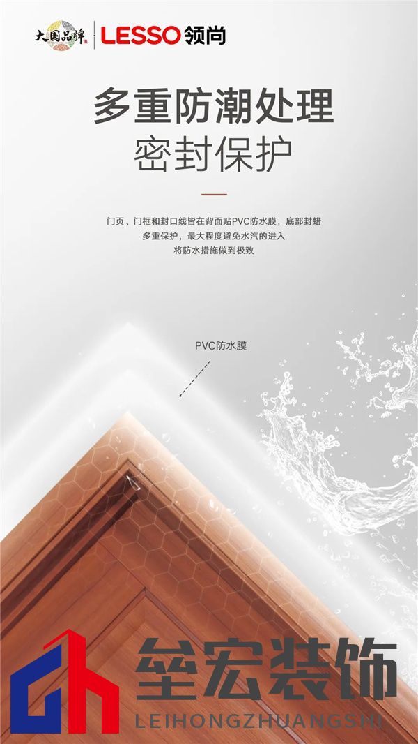 ??背面防護(hù)很重要 ??在挑選的時(shí)候一定要對(duì)背面細(xì)節(jié)關(guān)注,防止靠墻面以及當(dāng)空氣中的水汽凝結(jié)成水珠在木門上滑落時(shí)的濕氣入侵(想想自己每次洗澡后的木門)。領(lǐng)尚木門門頁(yè)、門框和封口線,皆在背面貼PVC防水膜,有效防止空氣中的水分侵入板材內(nèi)部,讓防潮效果更進(jìn)一步。