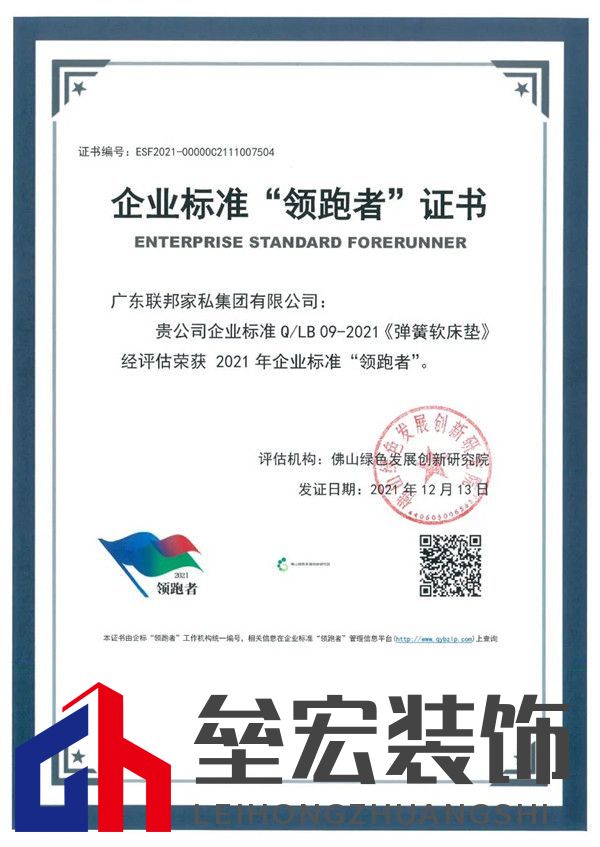 | ??日前,在2022年佛山市南海區(qū)質(zhì)量強(qiáng)區(qū)推進(jìn)工作大會上,對聯(lián)邦家私等在質(zhì)量品牌、標(biāo)準(zhǔn)化等領(lǐng)域表現(xiàn)優(yōu)異的企業(yè)進(jìn)行了表彰。此前,由中國標(biāo)準(zhǔn)化研究院主辦的2021年度企業(yè)標(biāo)準(zhǔn)“領(lǐng)跑者”名單公布,聯(lián)邦家私一款標(biāo)準(zhǔn)號為Q/LB09-2021的《彈簧軟床墊》榮獲2021企業(yè)標(biāo)準(zhǔn)“領(lǐng)跑者”。