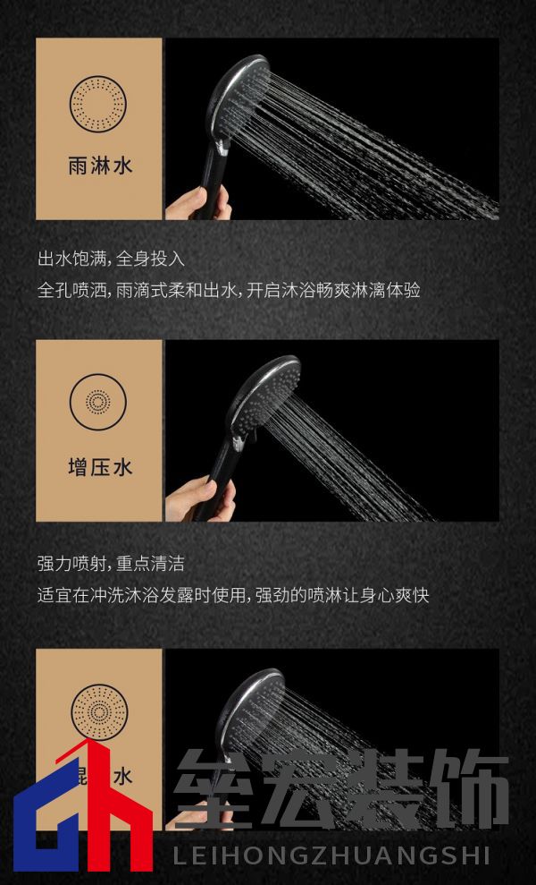 雨淋水:出水飽滿,全身投入。 全孔噴灑,雨滴式柔和出水,開啟沐浴暢爽淋漓體驗 增壓水:強力噴射,重點清潔。 適宜在沖洗沐浴發(fā)露時使用,強勁的噴淋讓身心爽快 混合水:均勻出水,舒適按摩 舒緩水流幫助緩解肌肉緊張感 易清潔不堵塞 食品級硅膠出水孔