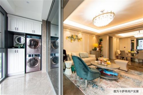 對(duì)于洗護(hù)場(chǎng)景而言,卡薩帝也依托嵌入式科技實(shí)現(xiàn)顛覆:洗衣機(jī)的純平嵌入,同樣實(shí)現(xiàn)了洗衣機(jī)前板與櫥柜純平一體,配合針對(duì)“纖維秩序”的五度數(shù)控科技,衣物輕松開啟“養(yǎng)護(hù)”之旅的同時(shí)更為陽(yáng)臺(tái)空間的打造提供更多可能。