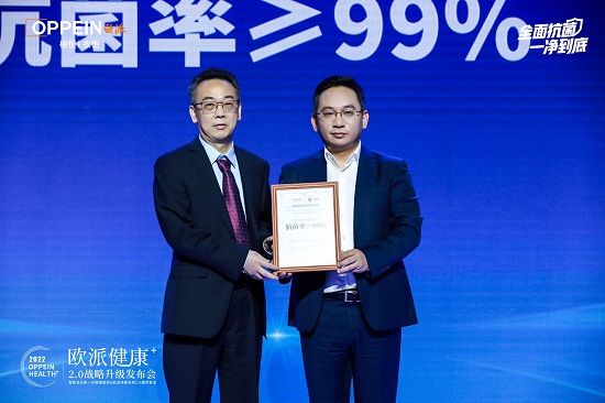 ??發(fā)布會當(dāng)天,歐派健康廚房再一次推出全民普惠升級,全新推出的歐派Health+抗菌臺面,采用全新1代光觸媒抗菌技術(shù),以科技抗菌、高效抗菌、安全抗菌、持久抗菌四大抗菌核心科技領(lǐng)航技術(shù)革新,經(jīng)過國家權(quán)威機(jī)構(gòu)檢測認(rèn)證——抗菌率≥99%,可有效破壞細(xì)菌遺傳物質(zhì),抑制大腸桿菌和金黃色葡萄球菌在廚房的生存繁衍。歐派Health+抗菌臺面榮獲CIAA抗菌標(biāo)志使用資格認(rèn)證,并在發(fā)布會上由廣東省科學(xué)院微生物研究所&廣東省抗菌材料與抗菌檢測工程技術(shù)研究中心主任謝小保先生作為代表,為歐派Health+抗菌臺面抗菌率≥99%的檢測結(jié)果進(jìn)行證書頒發(fā)。