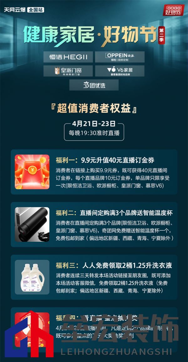 4月21日-4月23日,作為衛(wèi)浴新國貨品牌代表和智能衛(wèi)浴專家,恒潔將聯(lián)袂歐派、皇派、V6、奇團(tuán)優(yōu)選等家居頭部品牌,以硬核的品質(zhì)實力、驚艷的多重福利、連續(xù)的三天直播,共同為您打造重磅級健康家居?好物節(jié)(第二季),全面升級您的居家生活新體驗! 超長三天直播,勢掀家居新國貨搶購熱浪 你來逛,我就送!一天的嗨購不過癮,那就三天,足不出戶,就將所有健康家居好物一網(wǎng)打盡。 4月21日-23日,19:30準(zhǔn)時全國直播,主持人將與你在線互動,不僅會帶來多個健康家居好物,更帶來滿滿健康家居知識干貨,與你共度歡樂時光。 硬核品質(zhì)實力,全面守護(hù)家居健康 種草,不要套路,要認(rèn)準(zhǔn)衛(wèi)浴新國貨的硬核科技和專業(yè)守護(hù)。 恒潔Q9智能馬桶,集合了40多項國家專利,其恒凈除菌系統(tǒng),可實現(xiàn)最高達(dá)99.99%的除菌率,Q6智能馬桶,搭載水勁能沖水系統(tǒng),沖力強(qiáng)勁,潔凈無憂;確保如廁安全;全新恒潔R系列智能馬桶,出道即是極簡美學(xué)顏值巔峰,獨具清洗智能定位功能;恒潔HC0168DT超旋風(fēng)馬桶,業(yè)內(nèi)首次實現(xiàn)3.5L沖水量,比普通6L馬桶節(jié)水40%。
